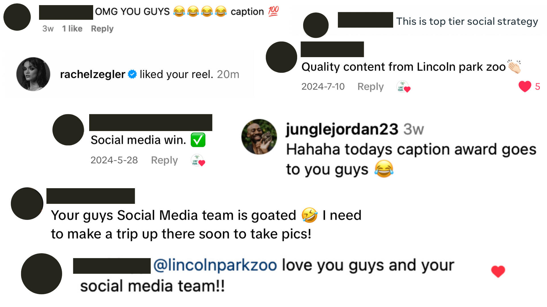 - Monitored and responded to comments and messages on Facebook, Instagram, Twitter (X), TikTok, and zoolife to foster trust and build community on the zoo’s channels